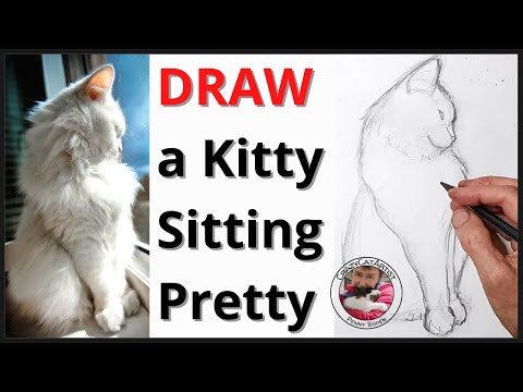 How to Draw a Sitting Down Cat - long haired full body side view profile easy tutorial for beginners - Sitting Cat Reference Drawing